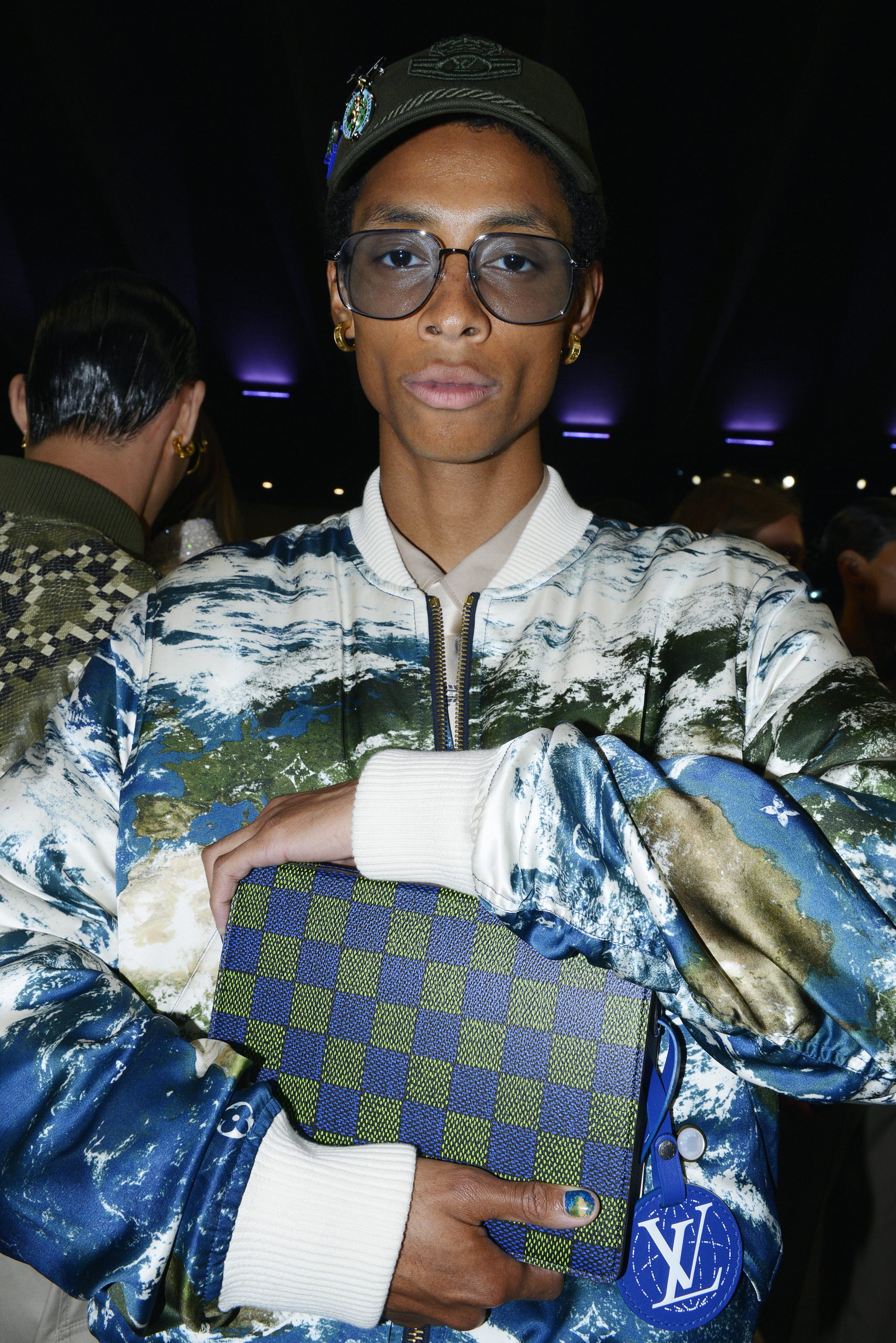 Togetherness comes around again with the accessories. Along with the new supple leather remakes, are archival reinventions: the Danube, the Nile, the Amazon and Bastille get relaunched this season, making for a rich line-up of It bag potentials. And in the case where the concept of Louis Vuitton’s global mentality was missed, Pharrell spells it out plainly: with a cartography print applied in scarves and the Damoflage, and with bags toned in ocean-blue and earth-green. Travel references also surface via the clothes. Aviator jackets, flight suits and other frequent-flyer archetypes pave the way for the house’s collaboration with Air Afrique, an organisation with the vision of spotlighting Afro-diasporic arts and knowledge.