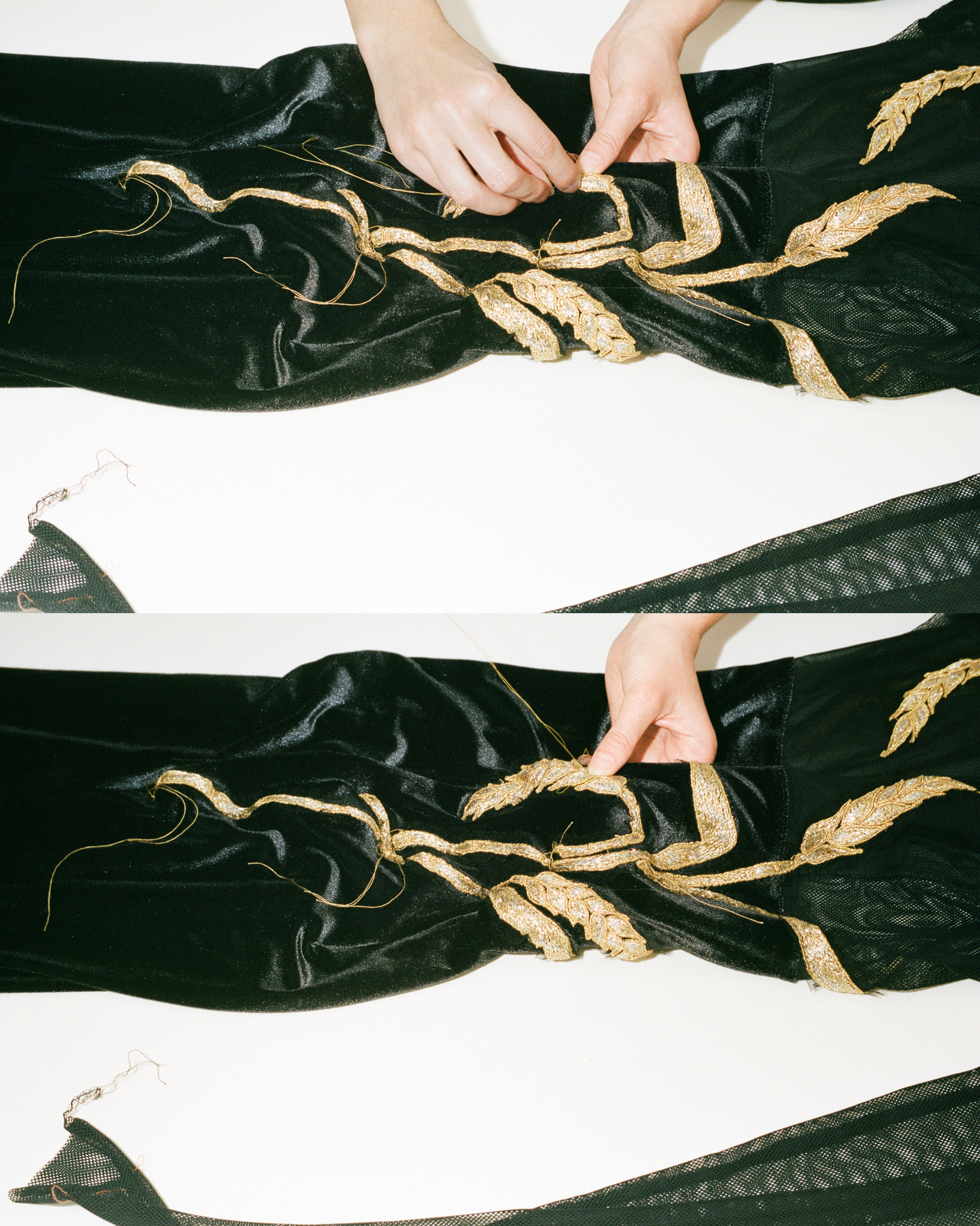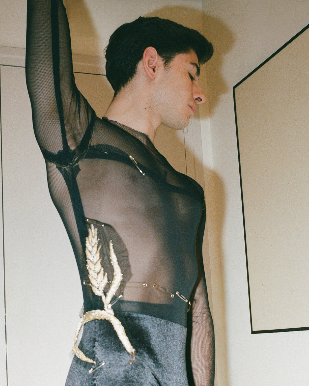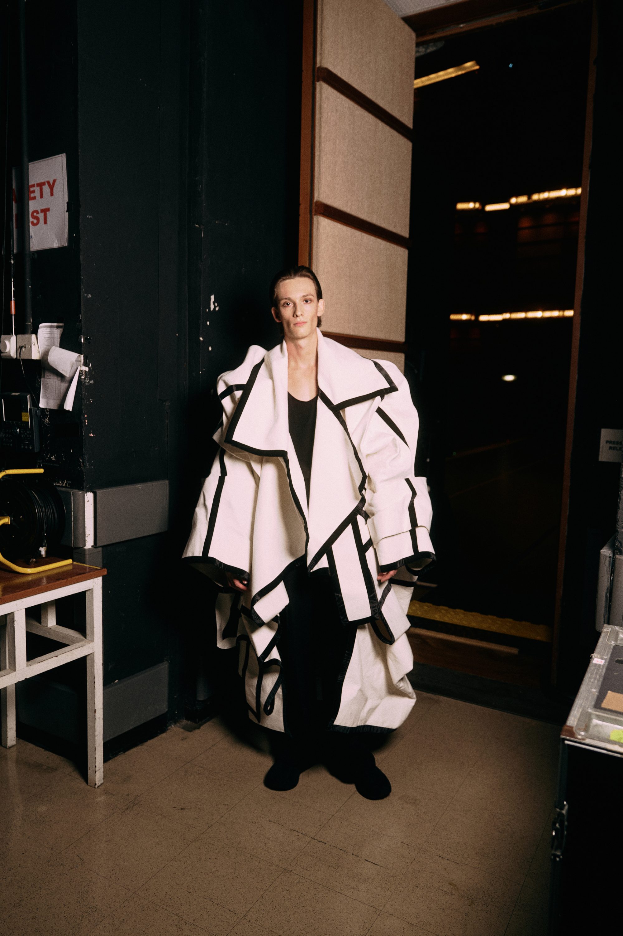 Julian Nicosia’s new work, Eternal Rift, became the highlight of the evening. For this piece, CHANEL created innovative costumes that explored themes of vulnerability and transformation. Sculptural black unitards embroidered with gold traced the dancers’ movements like glowing fractures of light. An oversized coat contrasted with a minimalist combination of wide-cut trousers and a simple tank, highlighting the tension between concealment and exposure. Together, the contrasting costumes mirrored the emotional journey of the piece, showing how vulnerability can become a form of strength. The costumes enhanced the performance, giving each movement a striking visual presence.