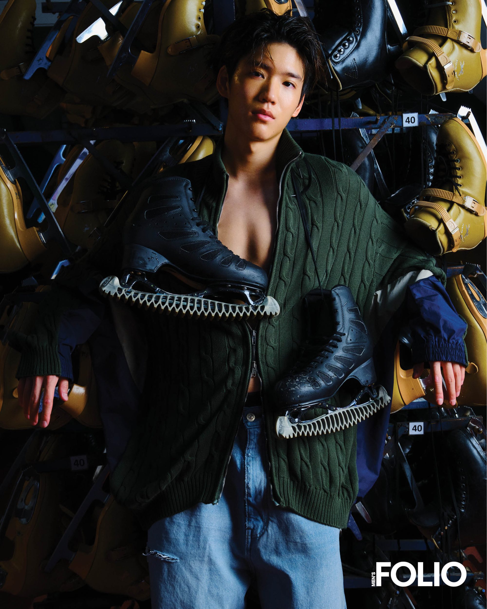 On the rink, Fang prefers performing to a groove-heavy track as the fun elements hype him up. “Bruno Mars inspires me a lot because his music carries both energy and feeling, featuring strong rhythm, musicality and natural progression. I enjoy tracks that give me space to play with timing, accents and character, be in smooth and controlled or dynamic and expressive,” he shares. Even when certain tracks do not make it into competition programs, they strongly influence how he imagines his movement, timing and emotional pacing on the ice, allowing him to channel a wider range of versatility in performance and depth. His costumes on stage reflect his style off the rink, with an affinity for clean, elegant and purposeful designs — “nothing too distracting,” as he describes. Describing his own style as minimal, practical with a slight edge, he looks to subtle details that enhance, rather than overpower his performance.
