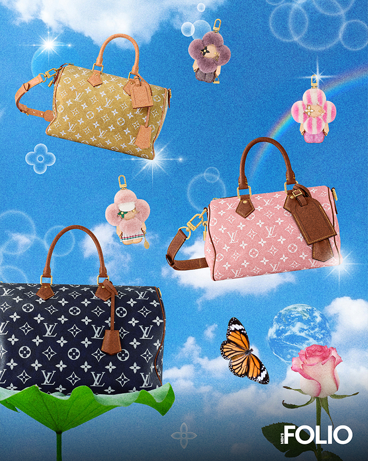 Speedy P9 Bandoulière shoulder bag, Vivienne Fashionista bag charm, all Louis Vuitton