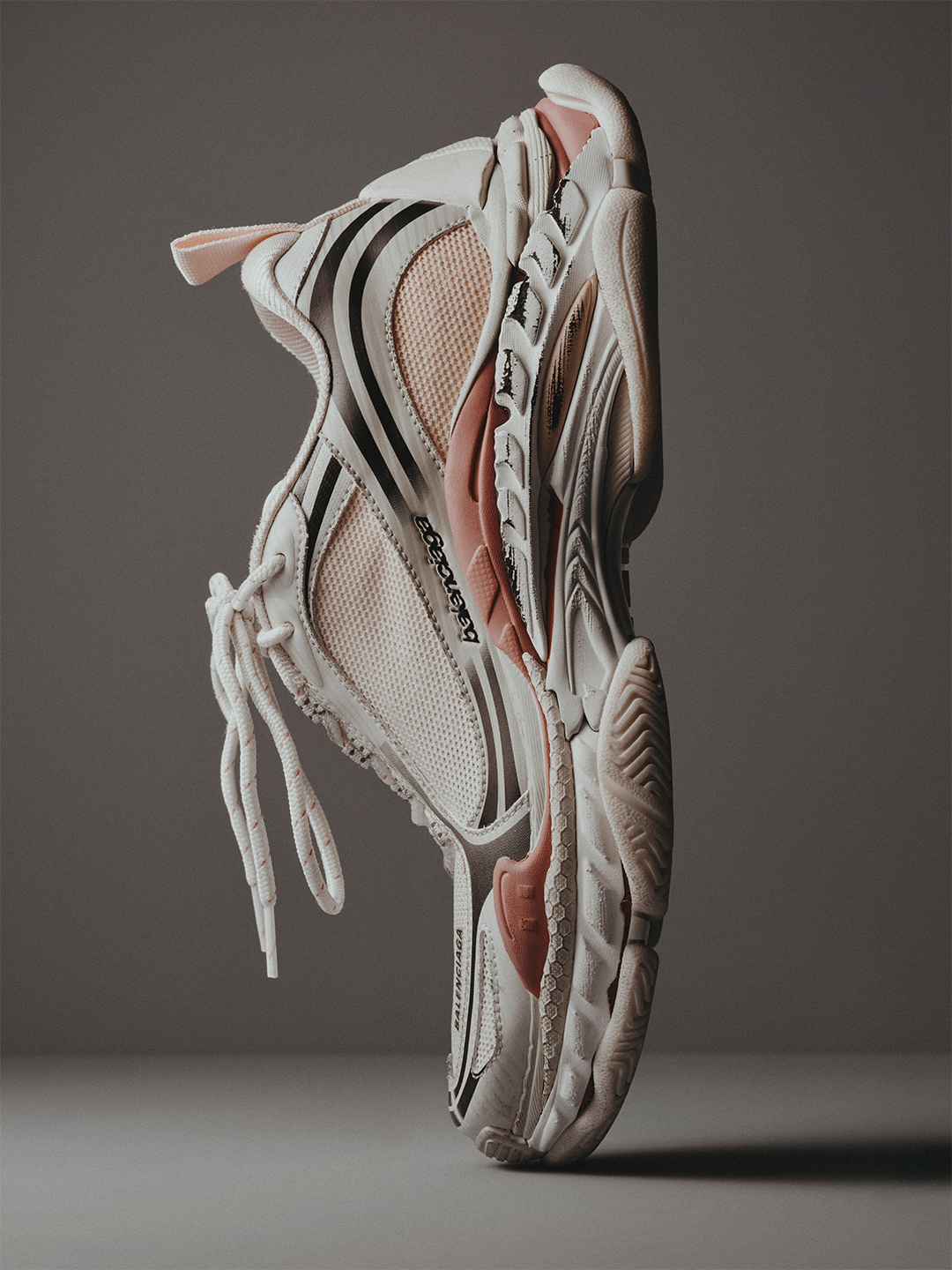 Now, with the Balenciaga Triple S.2, the approach pivots. Instead of amplifying what made the original so distinct, it refines it. The signature triple-stacked sole remains, but is stretched and smoothed into a longer, more streamlined form, redistributing weight for a more balanced, elongated stride. The effect is subtle but deliberate—less about impact, more about proportion.