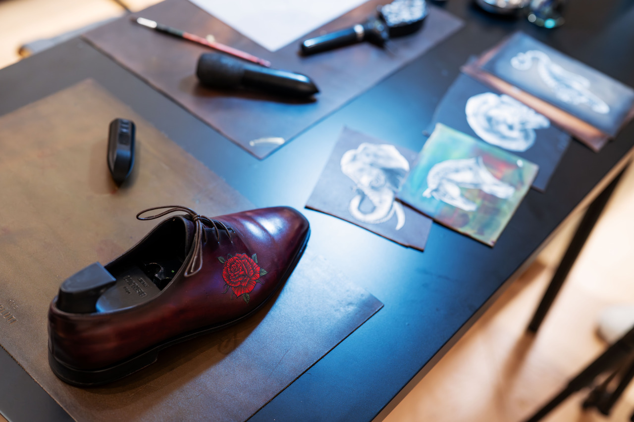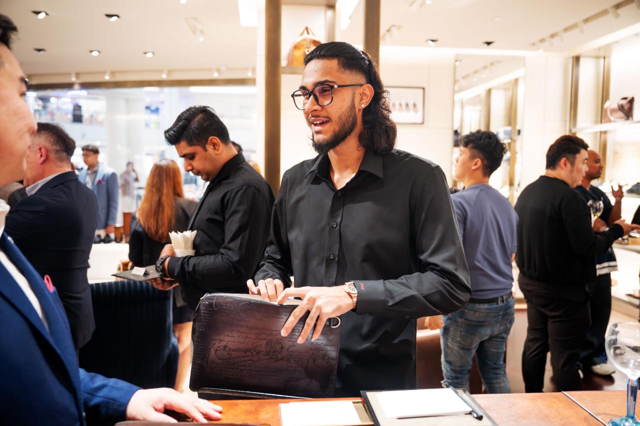 Following that was the demonstration of leather tattooing and Berluti’s trademark patina method. Attendees were invited to witness these skills performed by trained artisans of the brand, and to ask whatever questions they may have on the craft. Berluti started its life as a bespoke shoemaker, and it was only fitting that these personal customisation aspects were highlighted further.