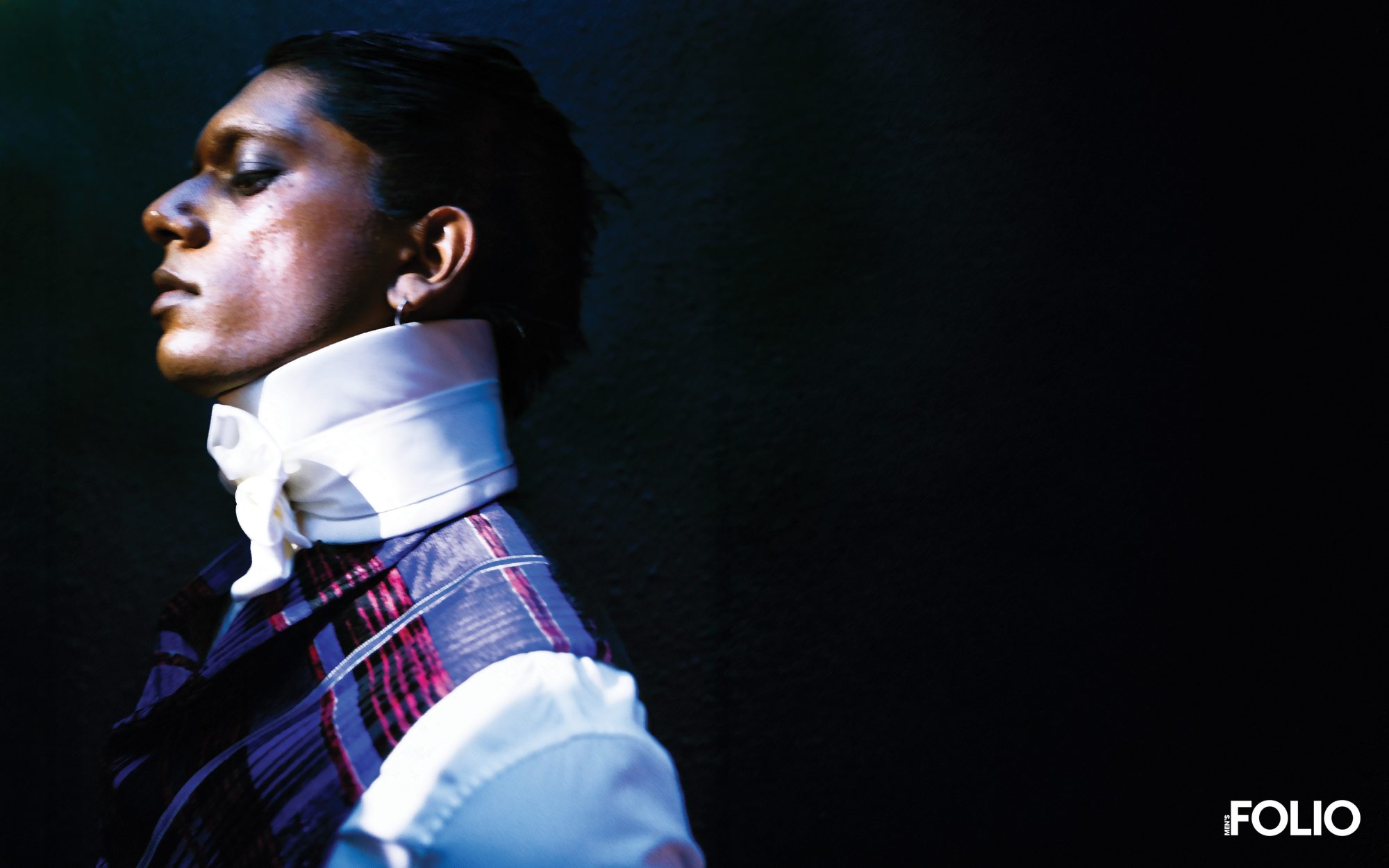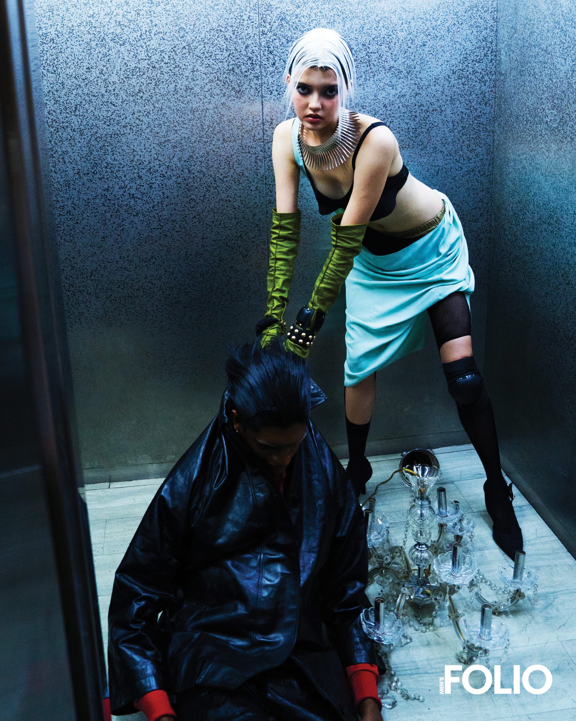 Shoulder epaulette, corset, belt, glove, all Stylist’s own