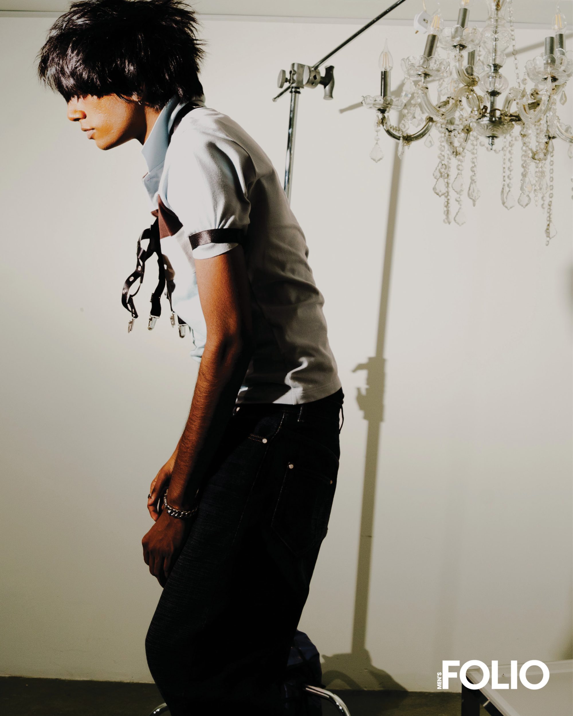 (On Hiren) Sweater, Miu Miu; Suspenders, Stylist’s own