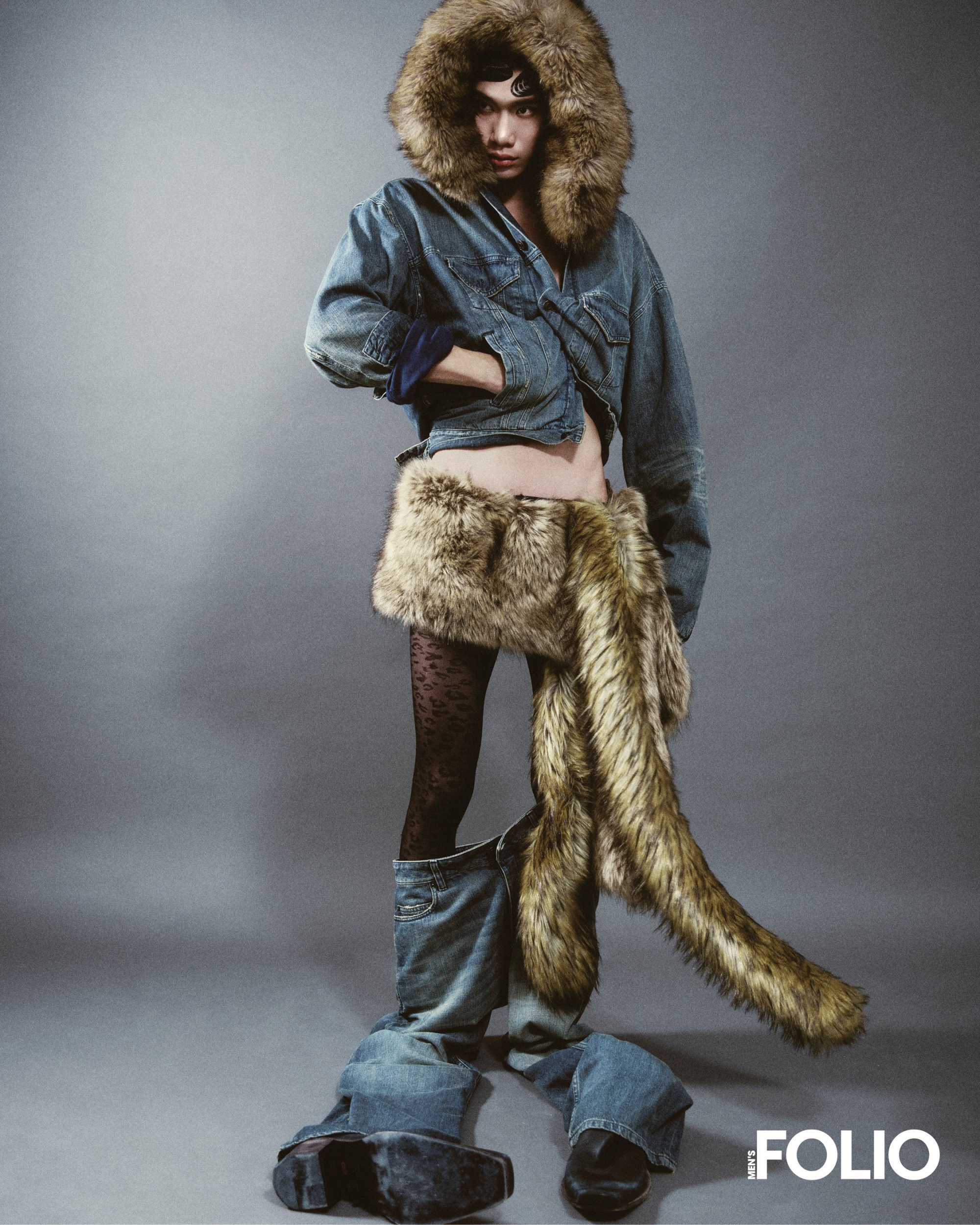 Jacket, pants, boots, all Balenciaga; Skirt, tights, all Stylist’s own