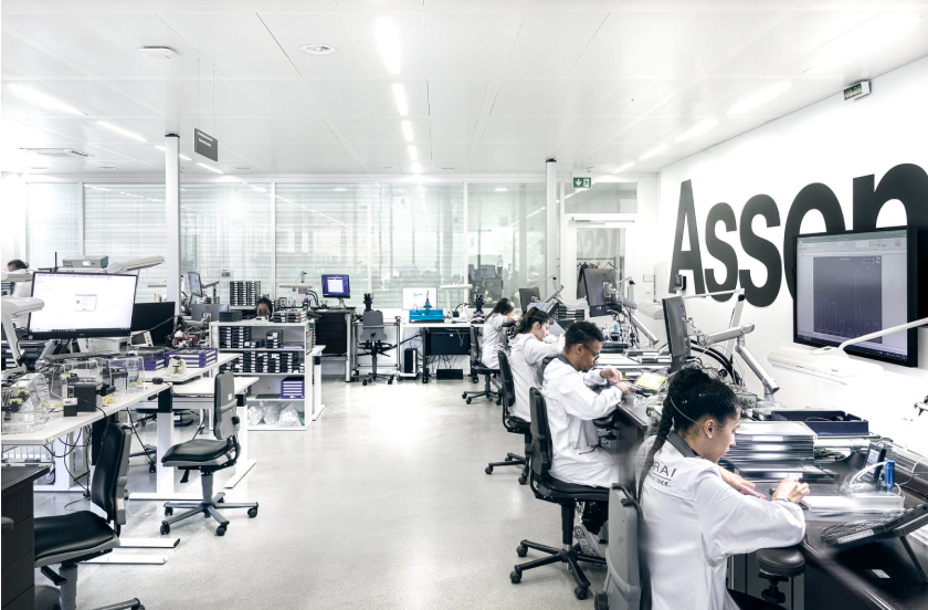 Eyes and now hands too take centre stage in the assembly department, away from the industrial precision of the rest of the manufacture. Watchmaker benches are lined with tiny vices, loupe stations, and time-graduated trays — each holding movements in various stages of becoming.