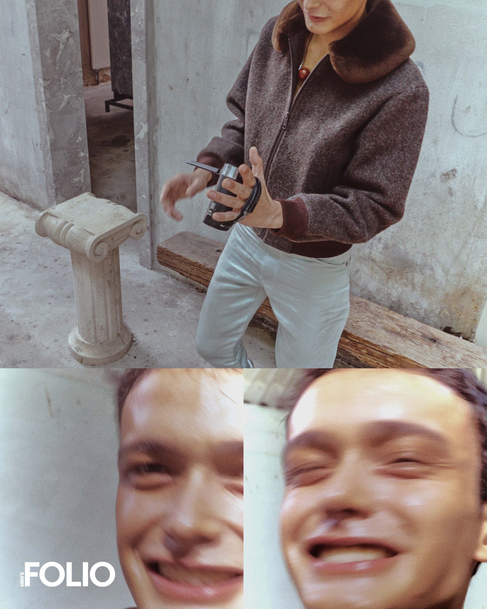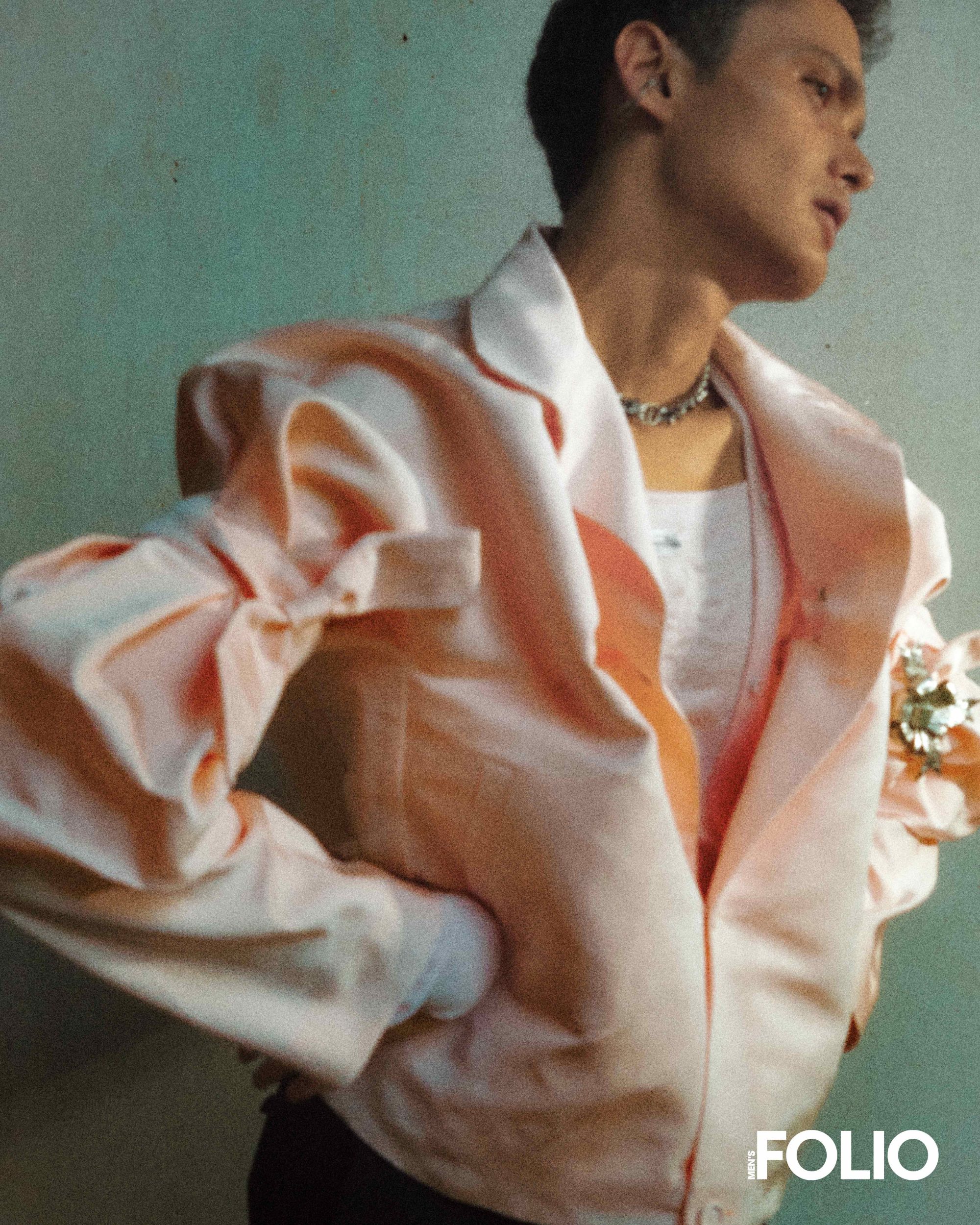 Jacket, top, pants, earring, necklace, brooch, all Dior Men